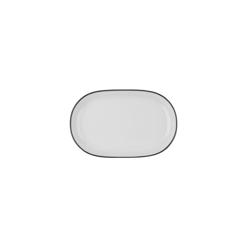 Блюдо овальное 18см — подходит для подачи закусок и десерта. Тарелка белая с черной каймой, она выполнена из профессионального ресторанного фарфора от брендаID Fine. Отличается прочностью и лёгко штабелируется. Практичное и стильное решение для кафе, ресторанов и гостиниц. Входит в базовую коллекцию Modest. Пожизненная гарантия от сколов.