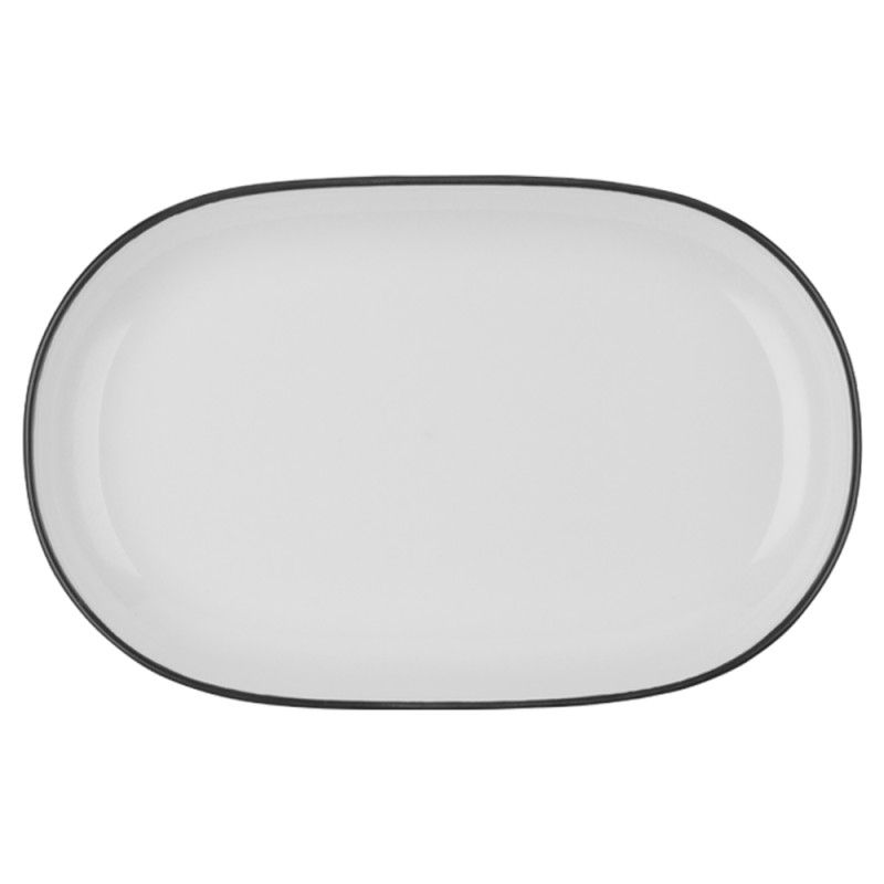 Блюдо овальное 37см — подходит для подачи блюд на компанию, закусок, вторых блюд, завтрака и дессертов. Тарелка белая с черной каймой, она выполнена из профессионального ресторанного фарфора от брендаID Fine. Отличается прочностью и лёгко штабелируется. Практичное и стильное решение для кафе, ресторанов и гостиниц. Входит в базовую коллекцию Modest. Пожизненная гарантия от сколов.