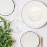Глубокая фарфоровая тарелка 20см, объём 170мл — подходит для подачи десерта. Тарелка белая с черной каймой, она выполнена из профессионального ресторанного фарфора от бренда ID Fine. Отличается прочностью и лёгко штабелируется. Практичное и стильное решение для кафе, ресторанов и гостиниц. Входит в базовую коллекцию Modest. Пожизненная гарантия от сколов.