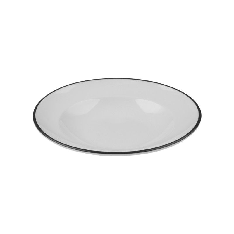 Глубокая фарфоровая тарелка 28см, объём 560мл — подходит для подачи салата, вторых блюд, пасты и дессерта. Тарелка белая с черной каймой, она выполнена из профессионального ресторанного фарфора от бренда ID Fine. Отличается прочностью и лёгко штабелируется. Практичное и стильное решение для кафе, ресторанов и гостиниц. Входит в базовую коллекцию Modest. Пожизненная гарантия от сколов.