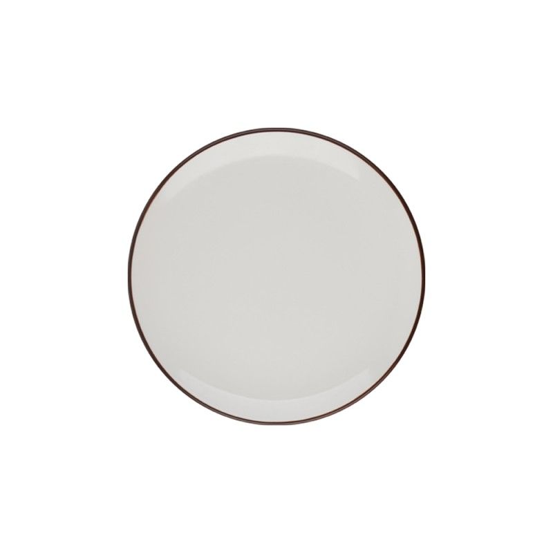 Фарфоровая тарелка 21см, подходит для подачи десертов и закусок, белая сервировочная тарелка с коричневой каймой от бренда ID Fine. Выполнена из профессионального ресторанного фарфора, отличается прочностью и стильным минималистичным дизайном, легко штабелируется. Универсальный выбор для кафе, ресторанов и гостиниц. Входит в базовую коллекцию Modest. Есть пожизненная гарантия от сколов.