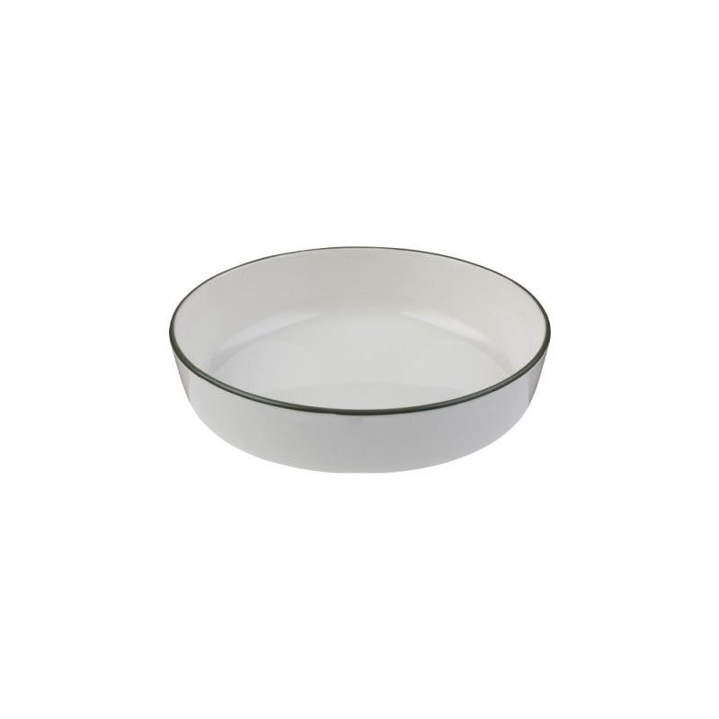 Фарфоровый салатник 21см 1170мл, подходит для подачи супа, пасты и салата. Белый салатник с зелёной каймой от бренда ID Fine. Выполнена из профессионального ресторанного фарфора, отличается прочностью и стильным минималистичным дизайном. Универсальный выбор для кафе, ресторанов и гостиниц. Входит в базовую коллекциюModest