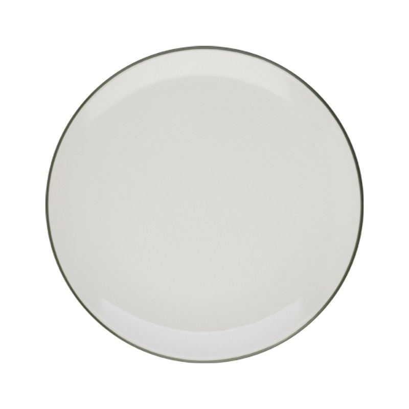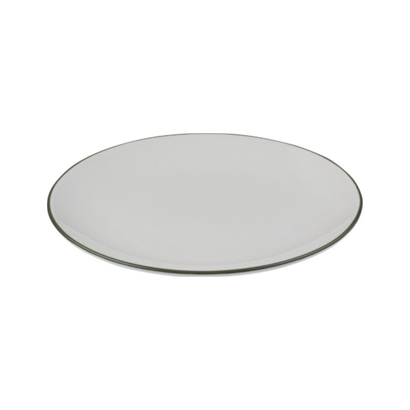 Фарфоровая тарелка 30см, подходит для подачи горячих блюд, закусок (сырного и мясного плато) и подачи сета. Белая тарелка с зелёной каймой от бренда ID Fine. Выполнена из профессионального ресторанного фарфора, отличается прочностью и стильным минималистичным дизайном, легко штабелируется. Универсальный выбор для кафе, ресторанов и гостиниц. Входит в базовую коллекцию Modest. Есть пожизненная гарантия от сколов.