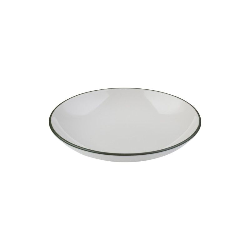 Глубокая фарфоровая тарелка 22см, объём 770 мл — подходит для подачи салата, вторых блюд, пасты и дессерта. Тарелка белая с зелёной каймой, она выполнена из профессионального ресторанного фарфора от бренда ID Fine. Отличается прочностью и лёгко штабелируется. Практичное и стильное решение для кафе, ресторанов и гостиниц. Входит в базовую коллекцию Modest. Пожизненная гарантия от сколов.