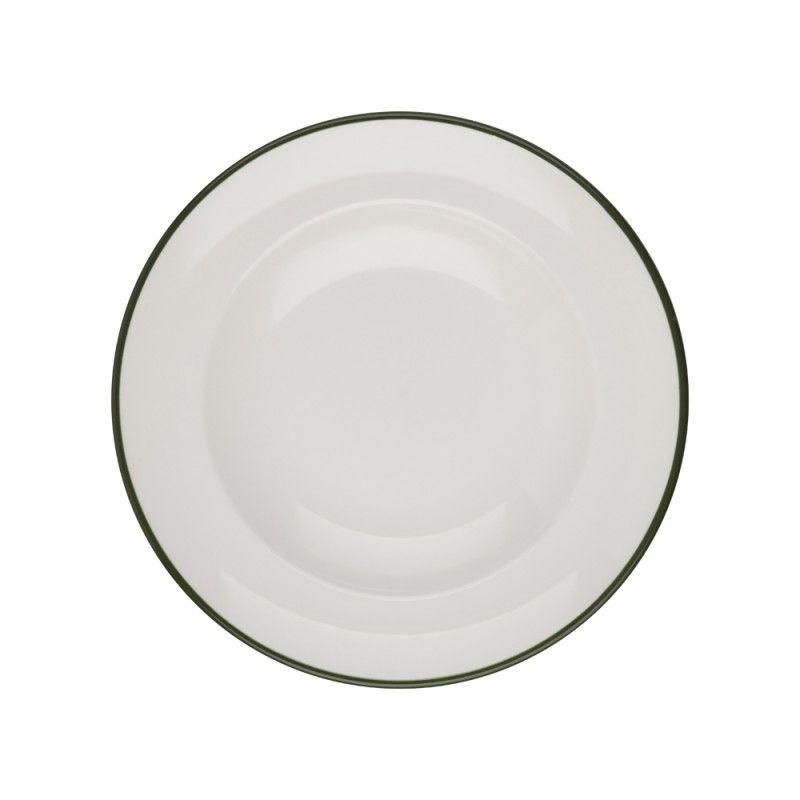 Глубокая фарфоровая тарелка 28см, объём 560мл — подходит для подачи пасты, салата и десерта. Тарелка белая с зелёной каймой, она выполнена из профессионального ресторанного фарфора от бренда ID Fine. Отличается прочностью и лёгко штабелируется. Практичное и стильное решение для кафе, ресторанов и гостиниц. Входит в базовую коллекцию Modest. Пожизненная гарантия от сколов.