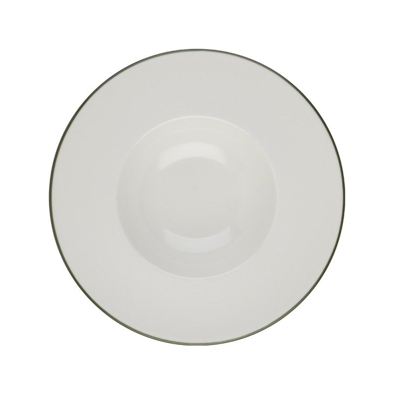 Глубокая фарфоровая тарелка 29см, объём 460мл — подходит для подачи пасты, салата и десерта. Тарелка белая с зелёной каймой, она выполнена из профессионального ресторанного фарфора от бренда ID Fine. Отличается прочностью и лёгко штабелируется. Практичное и стильное решение для кафе, ресторанов и гостиниц. Входит в базовую коллекцию Modest. Пожизненная гарантия от сколов.