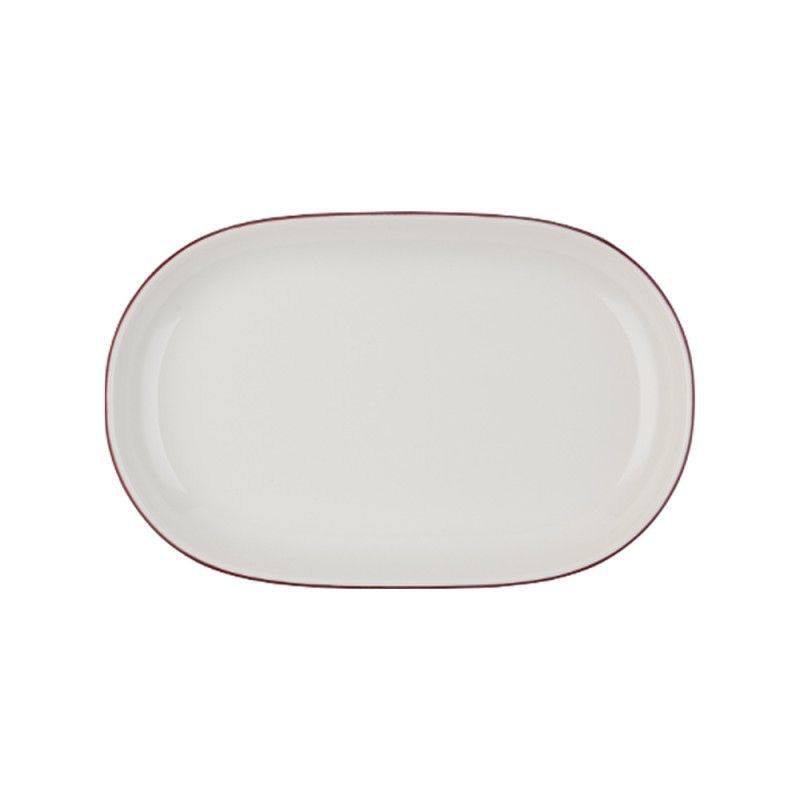 Блюдо овальное 33см — подходит для подачи закусок, завтрака, вторых блюд, сета и десерта. Тарелка белая с красной каемкой, она выполнена из профессионального ресторанного фарфора от бренда ID Fine. Отличается прочностью и лёгко штабелируется. Практичное и стильное решение для кафе, ресторанов и гостиниц. Входит в базовую коллекцию Modest. Пожизненная гарантия от сколов.