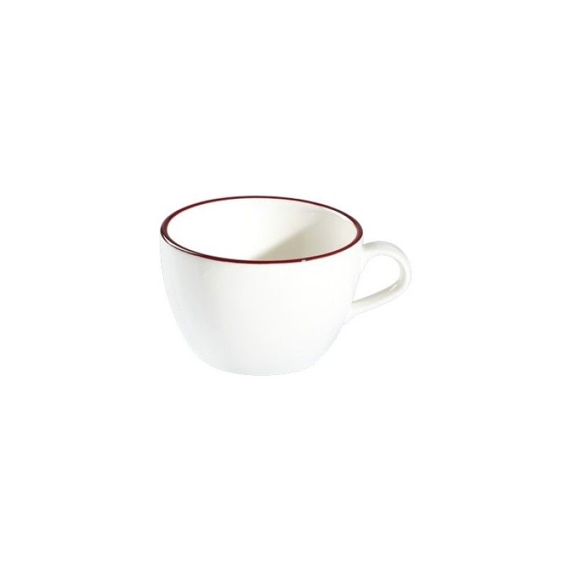 Фарфоровая чашка 340мл, подходит для подачи кофе (капучино) или чая. Белая чашка с красной каймой от бренда ID Fine. Выполнена из профессионального ресторанного фарфора, отличается прочностью и стильным минималистичным дизайном. Универсальный выбор для кафе, ресторанов и гостиниц. Входит в базовую коллекцию Modest. Удобна в хранение, все объемы (200мл,230мл,270мл и 340мл) чашек из коллекции Modest встают на одно блюдце 16см.