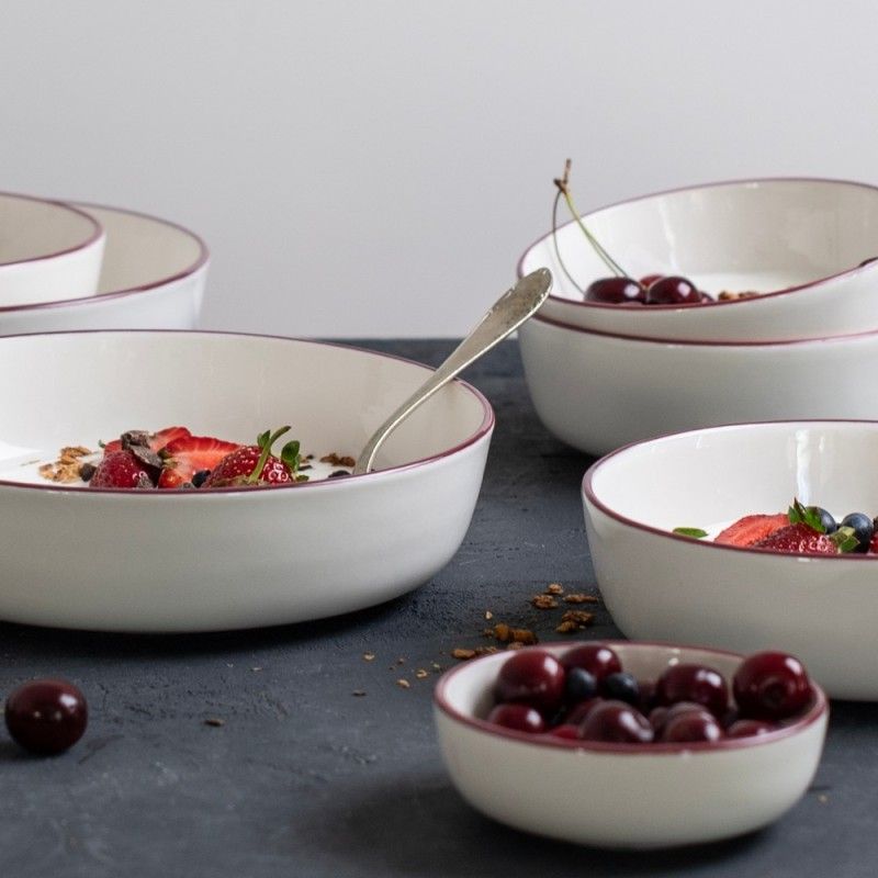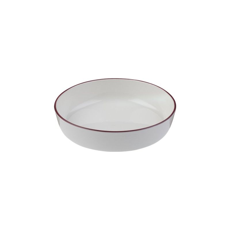 Фарфоровый салатник 21см 1170мл, подходит для подачи супа, пасты и салата. Белый салатник с красным оботком от бренда ID Fine. Выполнена из профессионального ресторанного фарфора, отличается прочностью и стильным минималистичным дизайном. Легко штабелируется. Универсальный выбор для кафе, ресторанов и гостиниц. Входит в базовую коллекцию Modest.