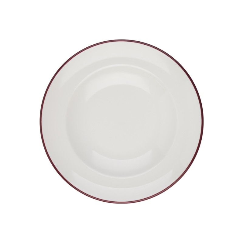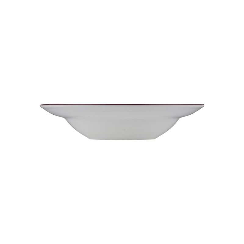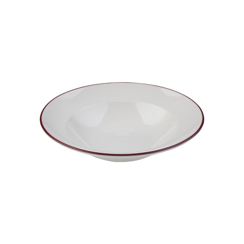 Глубокая фарфоровая тарелка 25см, объём 420мл — подходит для подачи пасты, салата и десерта. Тарелка белая с красным оботком, она выполнена из профессионального ресторанного фарфора от бренда ID Fine. Отличается прочностью и лёгко штабелируется. Практичное и стильное решение для кафе, ресторанов и гостиниц. Входит в базовую коллекцию Modest. Пожизненная гарантия от сколов.