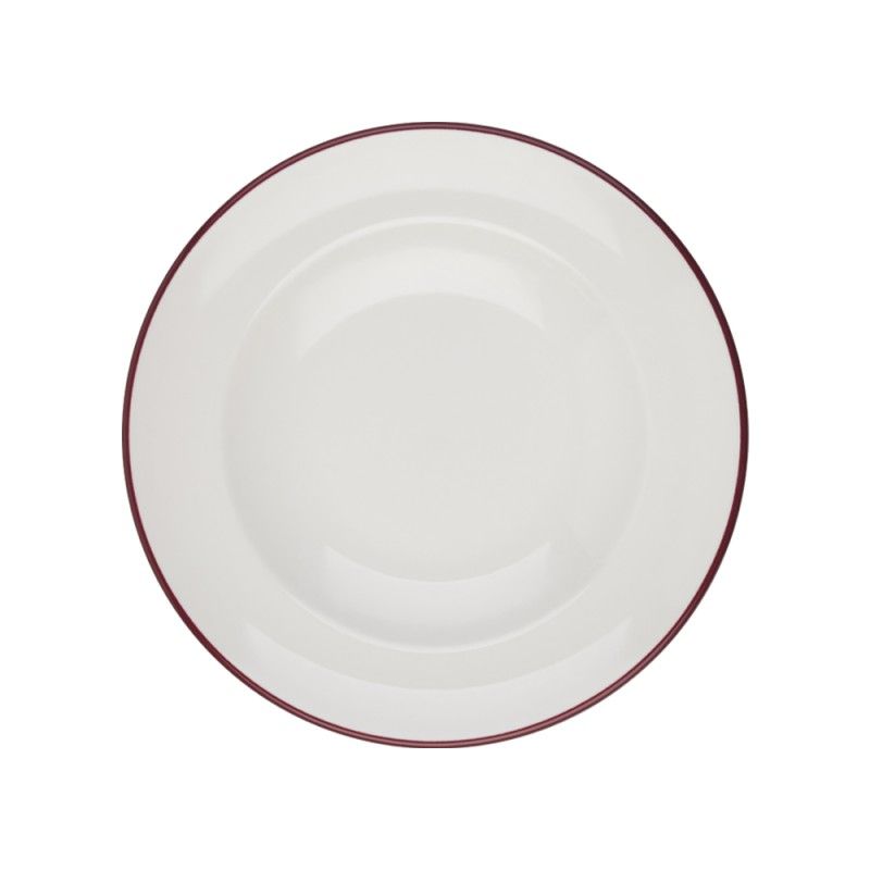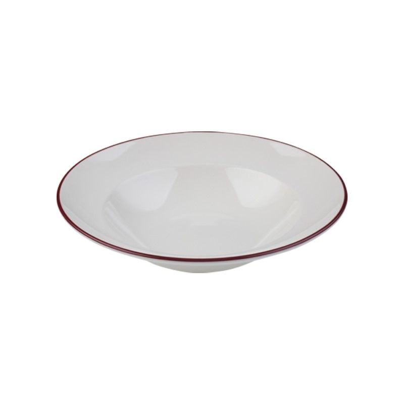 Глубокая фарфоровая тарелка 28см, объём 560мл — подходит для подачи пасты, салата и десерта. Тарелка белая с красной окантовкой, она выполнена из профессионального ресторанного фарфора от бренда ID Fine. Отличается прочностью и лёгко штабелируется. Практичное и стильное решение для кафе, ресторанов и гостиниц. Входит в базовую коллекцию Modest. Пожизненная гарантия от сколов.