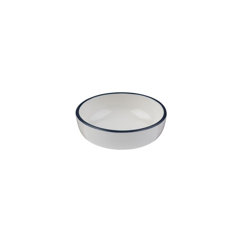 Фарфоровый салатник 14см 460мл, подходит для подачи супа и каши. Белый салатник с синей каймой от бренда ID Fine. Выполнена из профессионального ресторанного фарфора, отличается прочностью и стильным минималистичным дизайном. Универсальный выбор для кафе, ресторанов и гостиниц. Легко штабелируется. Входит в базовую коллекцию Modest.