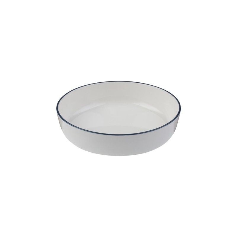 Фарфоровый салатник 21см 1170мл, подходит для подачи супа, пасты и салата. Белый салатник с синим кантом от бренда ID Fine. Выполнена из профессионального ресторанного фарфора, отличается прочностью и стильным минималистичным дизайном. Универсальный выбор для кафе, ресторанов и гостиниц. Входит в базовую коллекцию Modest.