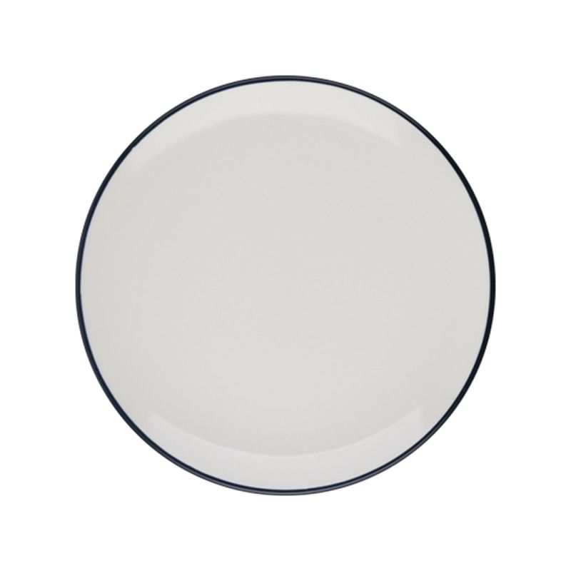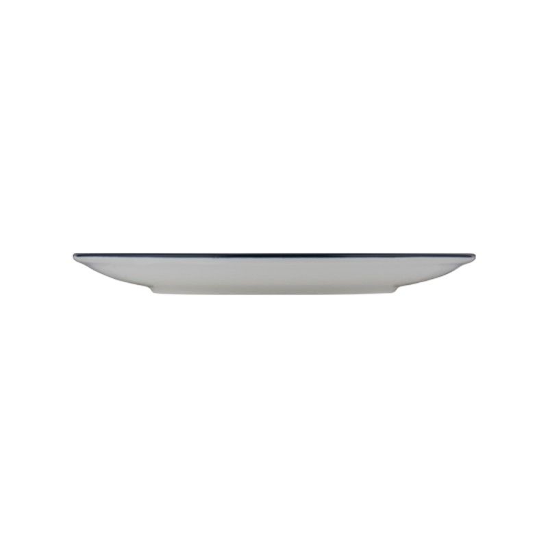 Фарфоровая тарелка 27см, подходит для подачи горячих блюд и закусок, белая тарелка с синим кантом от бренда ID Fine. Выполнена из профессионального ресторанного фарфора, отличается прочностью и стильным минималистичным дизайном, легко штабелируется. Универсальный выбор для кафе, ресторанов и гостиниц. Входит в базовую коллекцию Modest. Есть пожизненная гарантия от сколов.