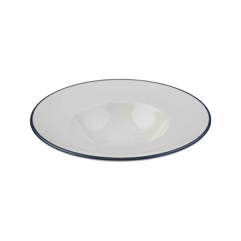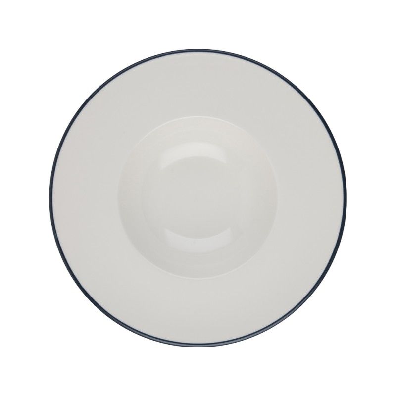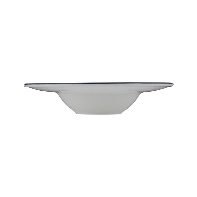 Глубокая фарфоровая тарелка 29см, объём 460мл — подходит для подачи пасты, салата и десерта. Тарелка белая с синим кантом, она выполнена из профессионального ресторанного фарфора от бренда ID Fine. Отличается прочностью и лёгко штабелируется. Практичное и стильное решение для кафе, ресторанов и гостиниц. Входит в базовую коллекцию Modest. Пожизненная гарантия от сколов.