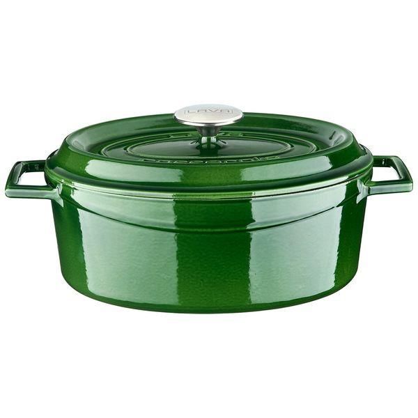 Чугунная эмалированная кастрюля овальная 4,67 л, 23х29 см, зеленый