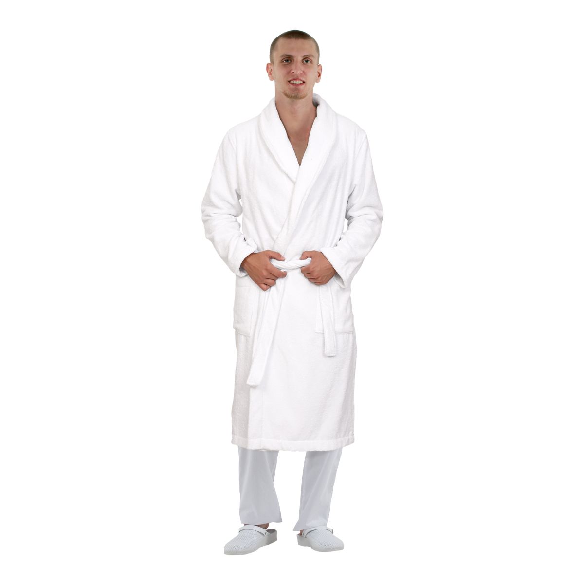 Халат гостиничный махровый «Элит» с воротником шалькой унисекс белый