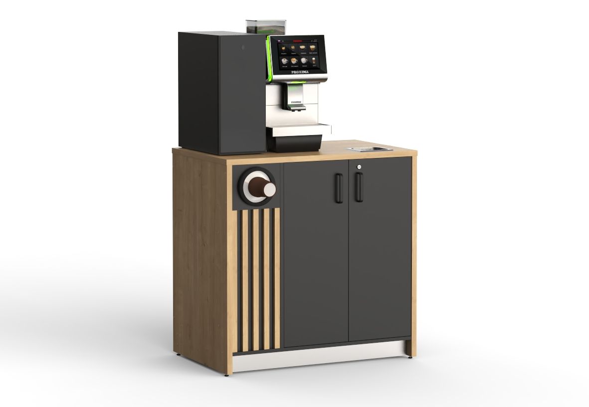 Габариты (ШхГ) : 954х619 мм ; Высота : 950 мм ; Назначение : Кофе-модуль самообслуживания ; Тип : напольный пристенный / островной ; Материал : ЛДСП Egger, нержавеющая сталь ; Декоры : фото складской программы размещены ниже ; Вес : 62 кг;