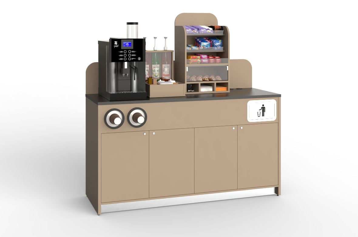 Габариты (ШхГ) : 1730х650 мм ; Высота : 1250/950 мм ; Назначение : Кофе-модуль самообслуживания ; Тип : напольный пристенный / островной ; Материал : ЛДСП Egger, нержавеющая сталь, пластик ; Декоры : фото складской программы размещены ниже ; Вес : 102 кг;