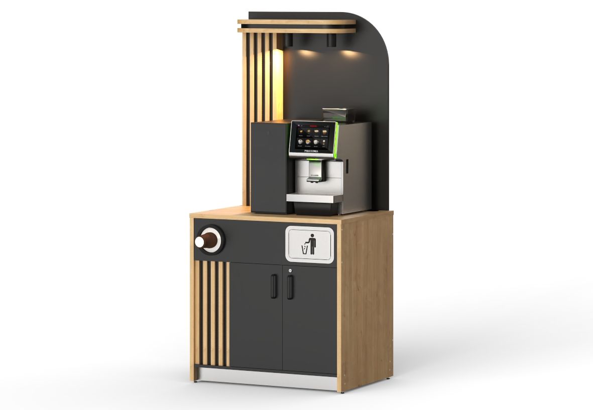Габариты (ШхГ) : 950х700 мм; Высота : 2090/950 мм ; Назначение : Кофе-модуль самообслуживания ; Тип : напольный пристенный / островной ; Материал : ЛДСП Egger, нержавеющая сталь ; Декоры : фото складской программы размещены ниже ; Вес : 99 кг;