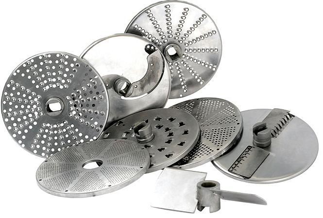 Комплект 6 дисков для CL 30, CL40: слайсер 2 мм (огурцы, лук) и 4 мм (помидоры, перец), терка 2 мм (морковь, свекла, сыр), соломка 4x4 мм, комплект для нарезки кубиками: ломтики 10 мм + решетка 10Х10 мм (морковь, вареный картофель).