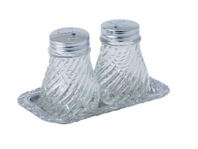 Набор предметов для специй, в который входит солонка и перечница. Материал: металл, стекло.