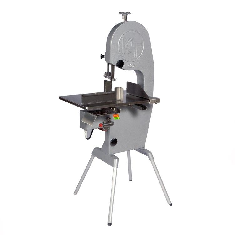 Описание Пила для мяса Koneteollisuus Oy (KT) 400 используется на предприятиях пищевой промышленности и торговли для нарезки на куски свежего и замороженного мяса, рыбы и птицы. Модель с 1 скоростью оснащена подвижным столом и тормозным двигателем, благодаря которому режущее полотно останавливается мгновенно после отключения электропитания. Рабочее полотно, защитный кожух и кожух полотна выполнены из нержавеющей стали, корпус пилы и ножки - из алюминия. Характеристики: Диаметр колеса: 400 мм Размер полотна: 3135х20 мм Размер подвижного стола: 560х870 мм Скорость движения полотна: 20 м/сек. Высота распила: 375 мм Ширина распила: 380 мм Амплитуда движения стола: 450 мм Напряжение: 380 В Мощность: 1,8 кВт Габариты: 975х650х1890 мм Вес: 120 кг