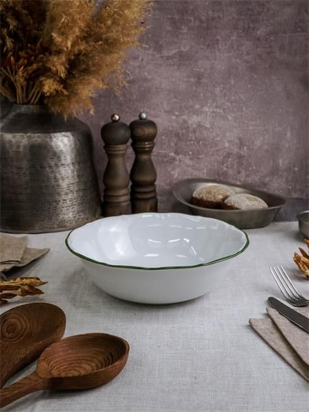 Салатник 23 см, кант зелёный