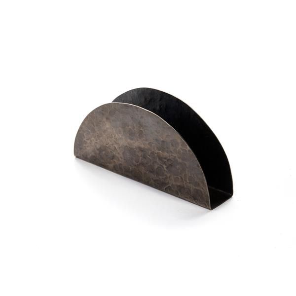 Салфетница мельхиоровая полукруглая, с чеканкой и патиной, 15х8 см