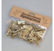 Прищепки-мини деревянные 2,5 см, золотые, 50 шт/уп