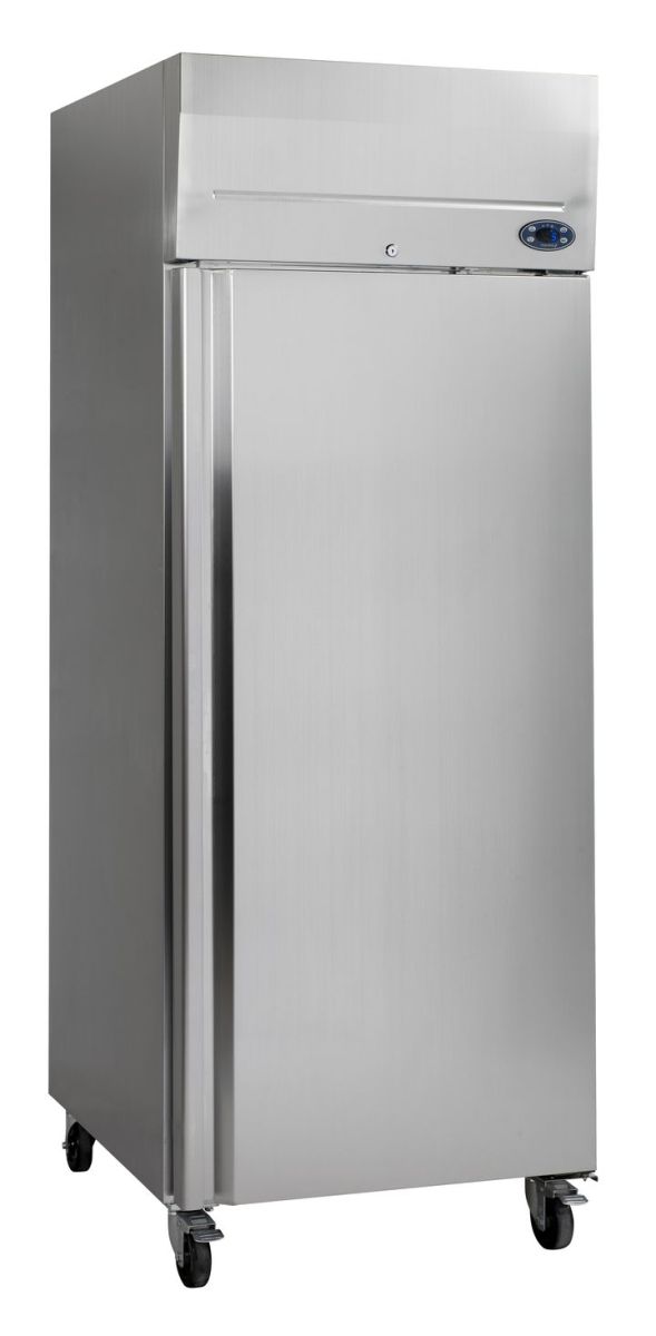 Технические характеристики: Климатический класс ST (38°C) Температурный режим, °C -18 до -24 Объём, л 650 Объем, нетто 597 Размеры, ШхГхВ, мм 740х850х2010 Внутренние размеры, ШхГхВ, мм 624х685х1396 Дверь 1 самозакрывающаяся, глухая Полки 3, GN2/1 внешняя отделка SS304 внутренняя отделка SS304 колеса/ножки 2 с тормозами и 2 без Замок да напряжение/частота В/Гц 220-240/50 входящая мощность, Вт 1000 Энергопотребление, кВт/24ч. 9,0 брутто вес, кг 147 Вес кг 138 уровень шума, Дб 48 тип охлаждения Вентилируемое тип оттайки автоматическая контроллер Цифровой Градусник да Фреон R404a загрузка фреона, гр 460 Подсветка 25 Вт
