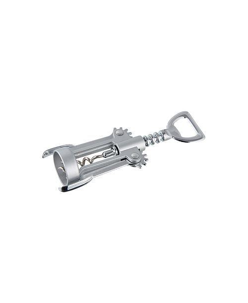 Штопор рычажный с открывалкой - специализированный инструмент для извлечения пробок из винных бутылок. Процесс открытия бутылки происходит при помощи надавливания на два специальных рычага, которые приводят в действие механизм откупоривания бутылок. Материал: хромированный цинковый сплав/пластик.