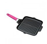 Сковорода-гриль, чугун, 24х24см с розовой силиконовой ручкой