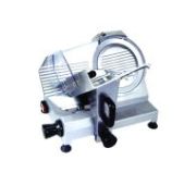Технические характеристики Габаритные размеры 465х390х365 мм Мощность 0,11 кВт Напряжение 220/50/1 Вес 12,8 кг Дополнительная информация Гастрономическая машина полуавтоматическая, диаметр ножа 220 мм, толщина среза 0.2 - 15 мм, встроенное затачивающее устройство, материал корпуса - алюминий.