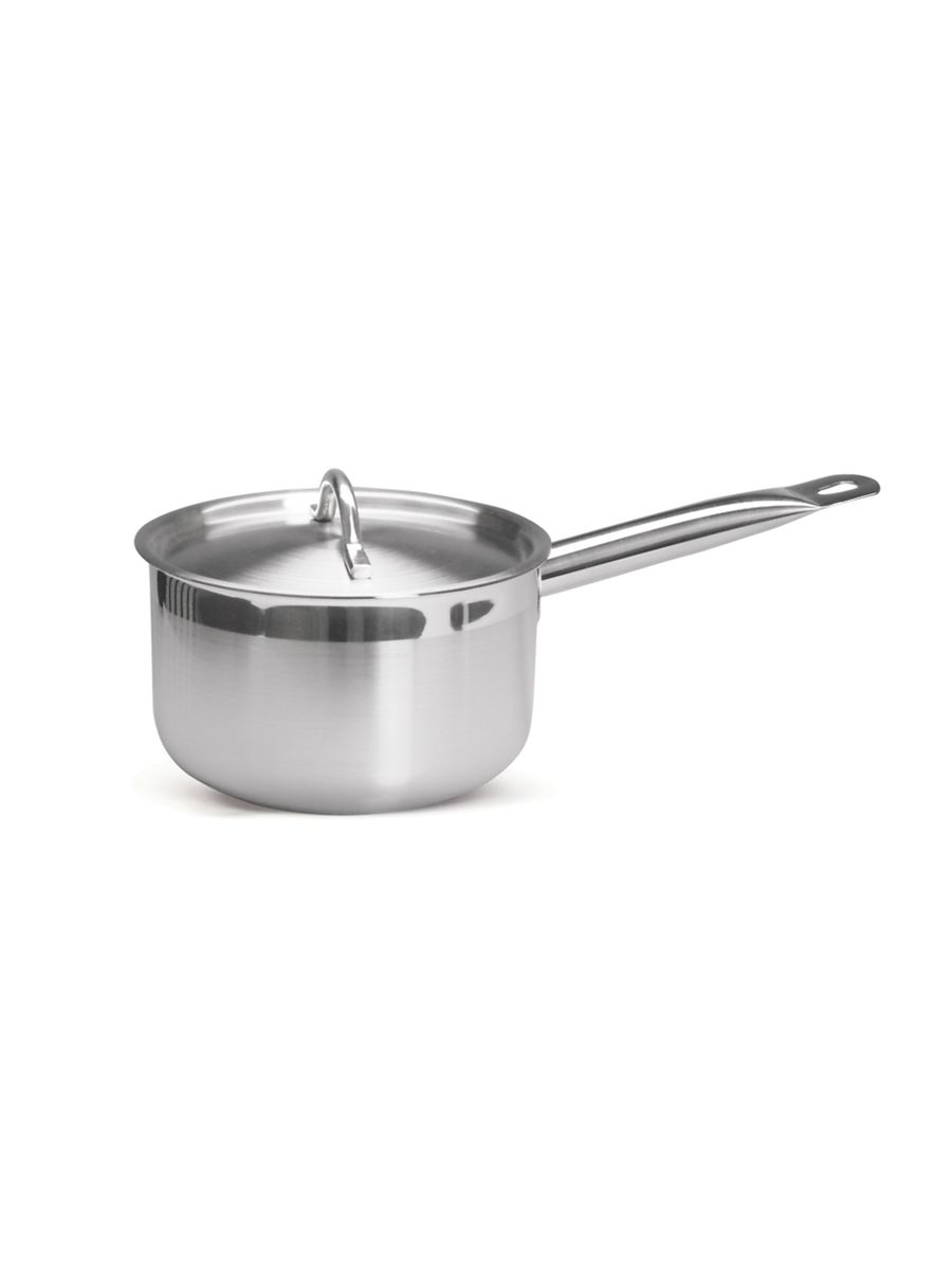 Объем : 1,3 л; Диаметр : 140 мм; Высота : 85 мм; Материал : нержавеющая сталь; Прочее : тройное дно, подходит для индукционных плит;