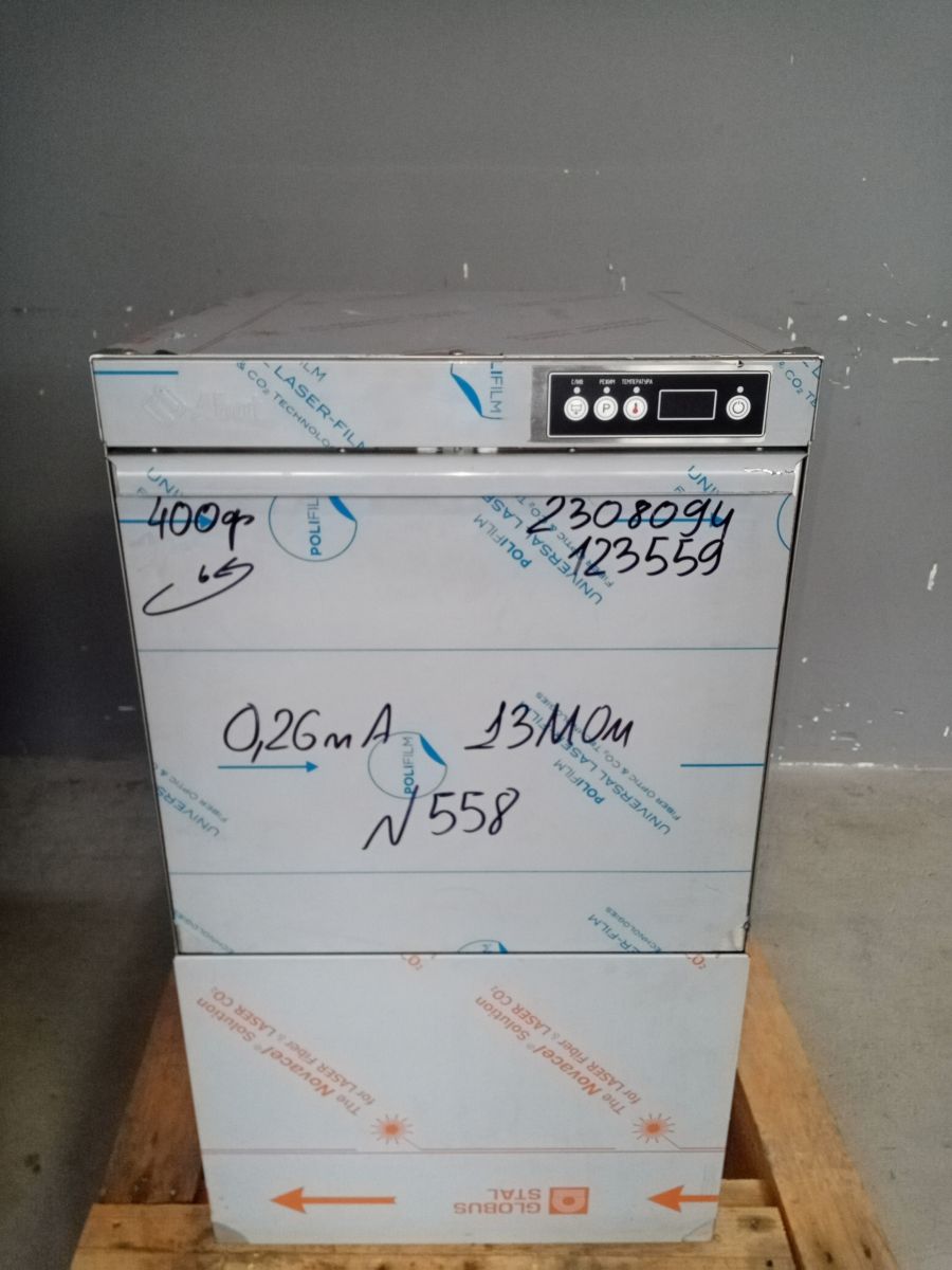 Состояние товара : новый; Причина уценки : новая, без упаковки; Производительность по стаканам : 700 шт./ч ; Цикл мойки : 120 / 180 / 300 сек. кВт ; Размер кассеты : 400х400 мм ; Подключение к горячей воде : да; Мощность ТЭНа ванны : 3 кВт ; Сливной насос (помпа) : да; Вес : 47 кг ; Габаритные размеры : 490х540х865 мм; Страна производства : Россия; Дозатор моющего средства : да; Дозатор ополаскивающего средства : да; Расход воды за цикл : 3 л ; Температура подключаемой воды : 5 °C ; Емкость бойлера : 3.4 л ; Емкость моечной ванны : 4 л ; Напряжение : 220 В ; Мощность помпы : 0.5 кВт ; Мощность бойлера : 2.5;