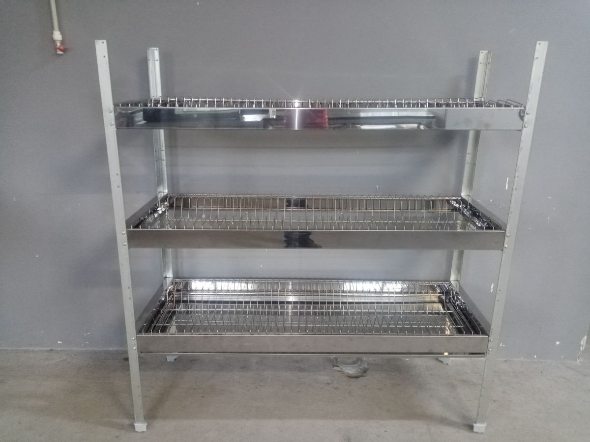Состояние товара : отличное; Причина уценки : б/у; Тип полок : для посуды ; Количество полок : 3 ; Материал каркаса : оцинк. сталь ; Материал полок : нерж. сталь ; Габаритные размеры : 1500х535х1600 мм; Вес : 32 кг ; Страна производства : Россия;
