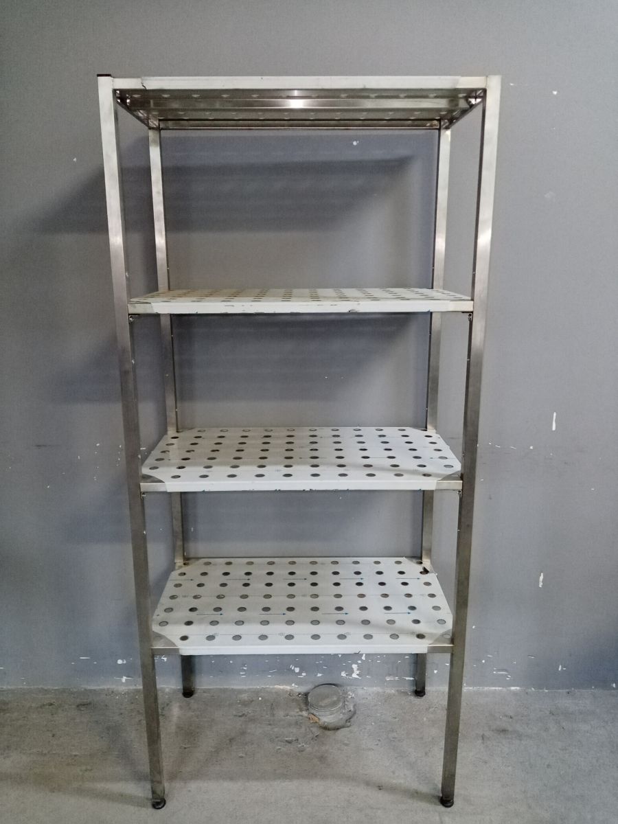 Состояние товара : новый; Причина уценки : новый; Тип полок : перфорированные ; Количество полок : 4 ; Материал каркаса : нерж. сталь ; Габаритные размеры : 850х500х1870 мм; Вес : 19 кг ; Страна производства : Россия;