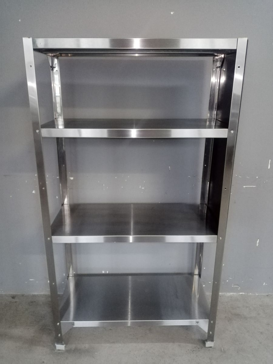 Причина уценки : бу; Состояние товара : отличное; Тип полок : сплошные ; Количество полок : 4 ; Материал каркаса : нерж. сталь ; Материал полок : нерж. сталь; Габаритные размеры : 900х400х1600 мм; Вес : 22 кг ; Страна производства : Россия;