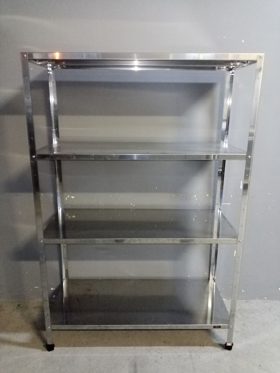 Состояние товара : новый; Причина уценки : уценка, без упаковки; Тип полок : сплошные ; Количество полок : 4 ; Материал каркаса : нерж. сталь ; Габаритные размеры : 1200х500х1800 мм; Вес : 30 кг ; Страна производства : Россия;