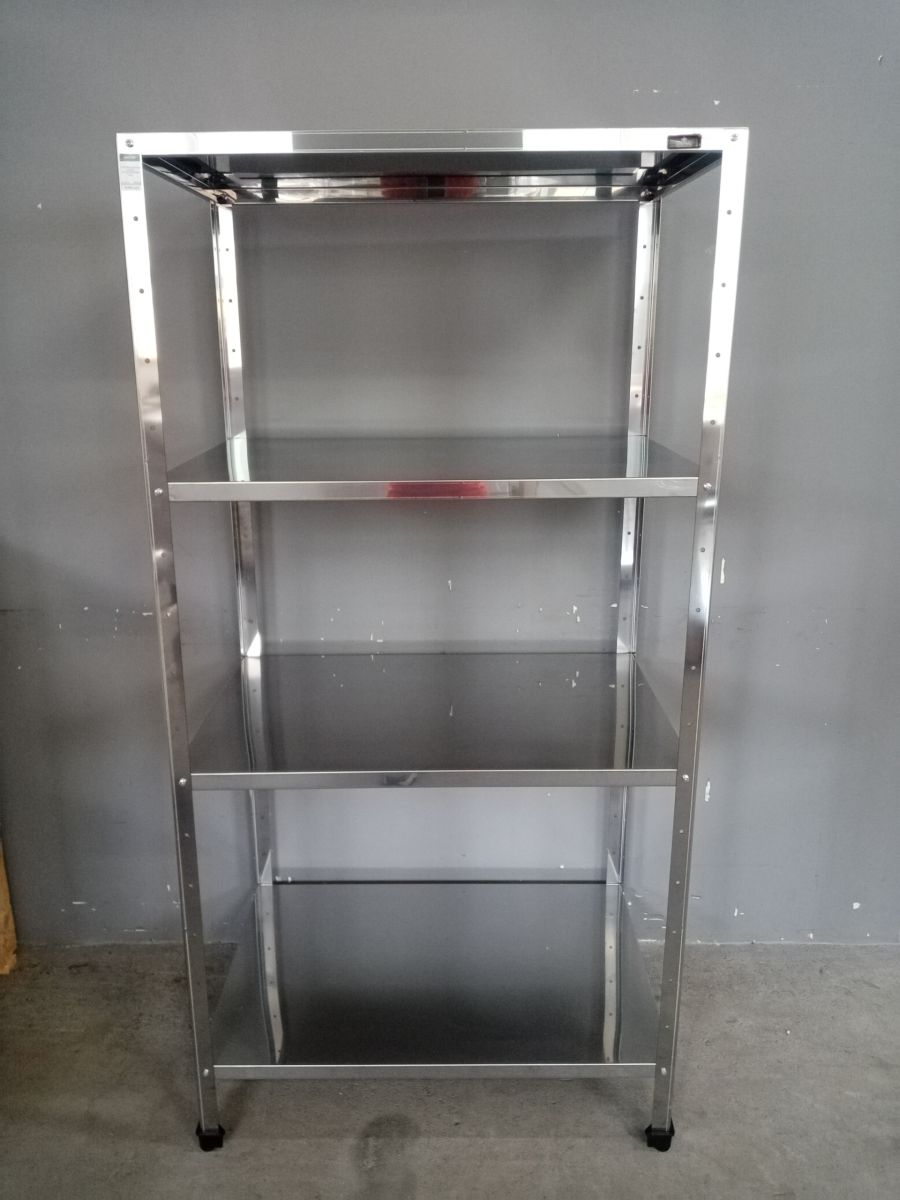 Состояние товара : новый; Причина уценки : Уценка, без упаковки; Тип полок : сплошные ; Количество полок : 4 ; Материал каркаса : нерж. сталь ; Материал полок : нерж. сталь ; Габаритные размеры : 600х600х1800 мм; Вес : 27 кг ; Страна производства : Россия;