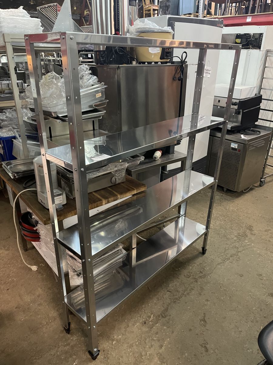 Состояние товара : новый; Причина уценки : выставочный образец; Материал каркаса : Нерж. сталь AISI 430 ; Форма каркаса : Уголок ; Материал полок : Нерж. сталь AISI 430 ; Количество полок : 4 ; Габаритные размеры : 1400х300х1800 мм; Производство : Россия;