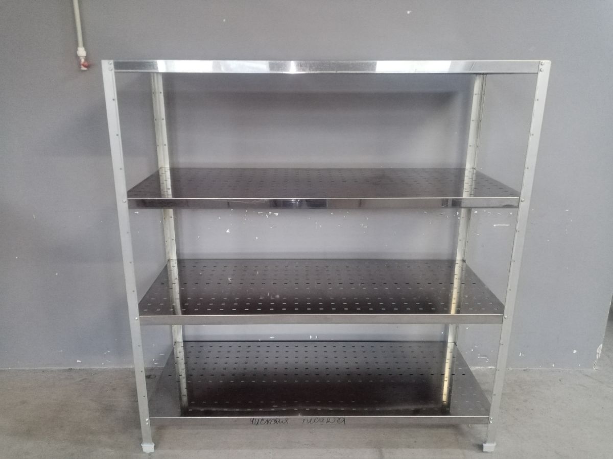 Состояние товара : отличное; Причина уценки : б/у; Тип полок : перфорированные ; Количество полок : 4 ; Материал каркаса : оцинк. сталь ; Материал полок : нерж. сталь; Габаритные размеры : 1500х600х1600 мм; Вес : 36 кг ; Страна производства : Россия;