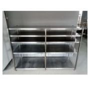 Состояние товара : отличное; Причина уценки : выставочный образец; Тип полок : сплошные ; Количество полок : 4 ; Максимальная загрузка на полку : 150 кг; Материал каркаса : оцинкованная сталь ; Материал полок : нерж. сталь ; Габаритные размеры : 1200х400х1830 мм; Вес (без упаковки) : 25.6 кг;