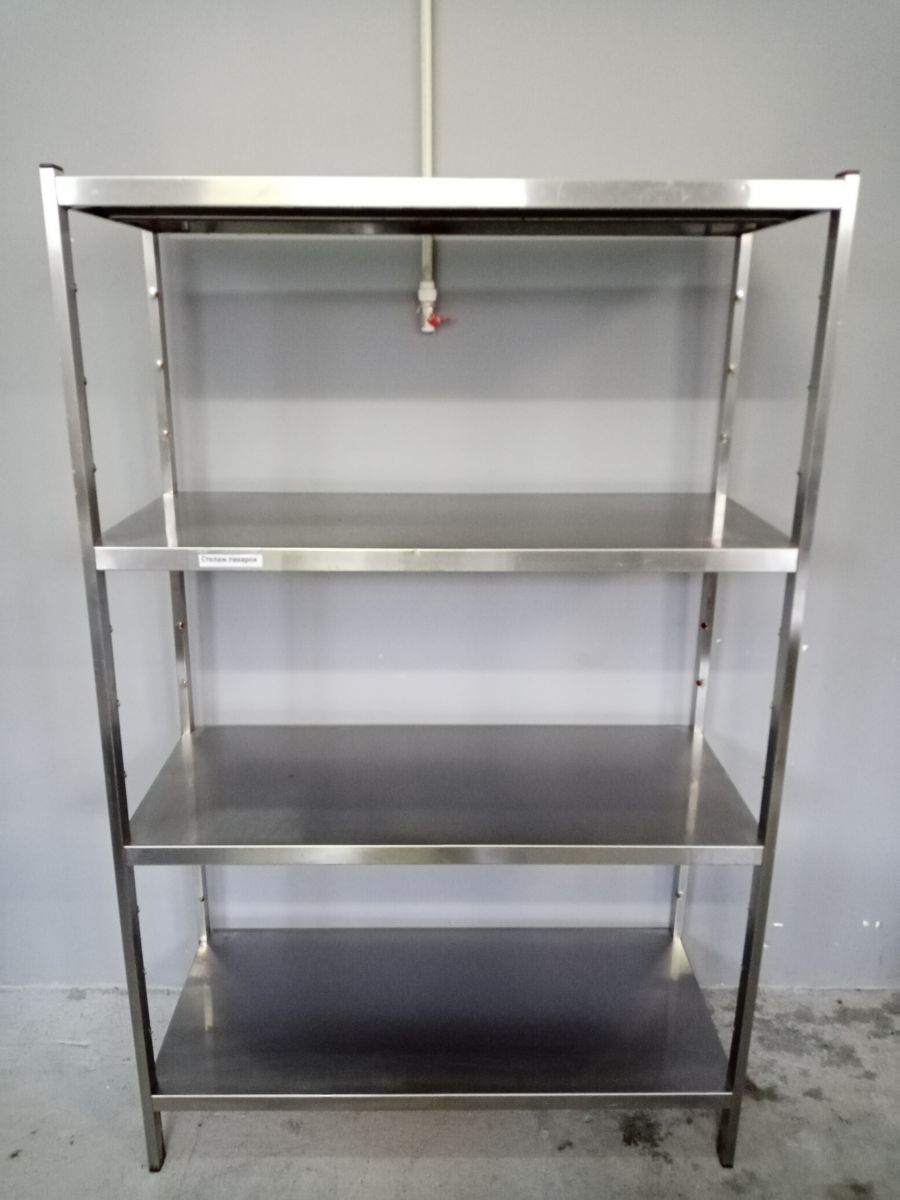 Состояние товара : хорошее; Причина уценки : б/у; Габаритные размеры : 1150х500х1800 мм; Каркас : нерж. сталь; Тип полок : сплошные ; Количество полок : 4 нерж. сталь ; Страна производства : Россия;
