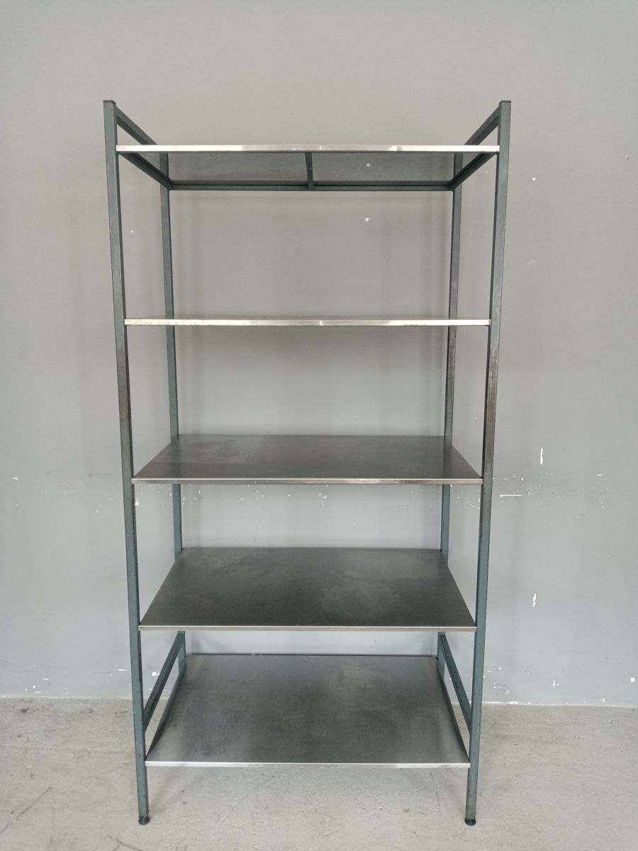 Состояние товара : хорошее; Причина уценки : б/у; Тип полок : сплошные ; Количество полок : 5 ; Материал каркаса : окраш. сталь ; Материал полок : нерж. сталь ; Габаритные размеры : 1000х600х2000 мм; Вес : 28 кг ; Страна производства : Россия;