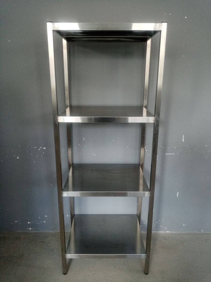 Состояние товара : отличное; Причина уценки : б/у; Тип полок : сплошные ; Количество полок : 4 ; Материал каркаса : нерж. сталь ; Материал полок : нерж. сталь ; Габаритные размеры : 680х500х1800 мм; Вес : 18 кг ; Страна производства : Россия;