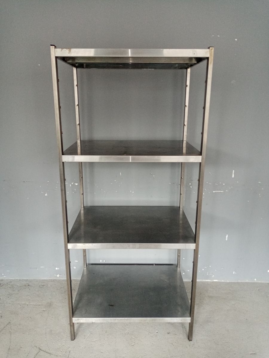 Состояние товара : хорошее; Причина уценки : б/у; Тип полок : сплошные ; Количество полок : 4 ; Материал каркаса : нерж. сталь ; Материал полок : нерж. сталь ; Габаритные размеры : 800х600х1800 мм; Вес : 24 кг ; Страна производства : Россия;