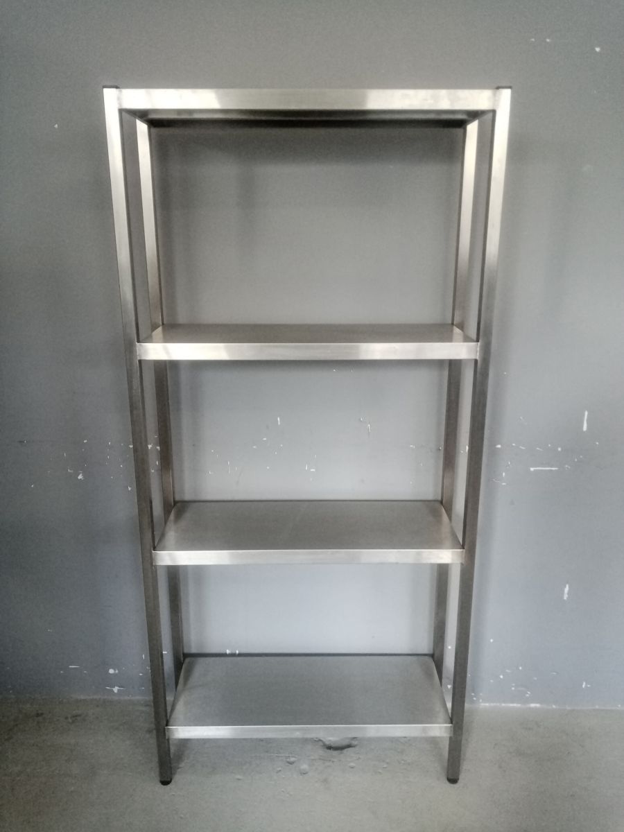 Состояние товара : отличное; Причина уценки : б/у; Тип полок : сплошные ; Количество полок : 4 ; Материал каркаса : нерж. сталь ; Габаритные размеры : 850х300х1800 мм; Вес : 17 кг ; Страна производства : Россия;