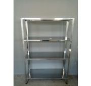Состояние товара : новый; Причина уценки : без упаковки; Габаритные размеры : 500х400х1820 мм; Стойки : крашенный металл (уголок 40х40); Полки : сплошные AISI 430;